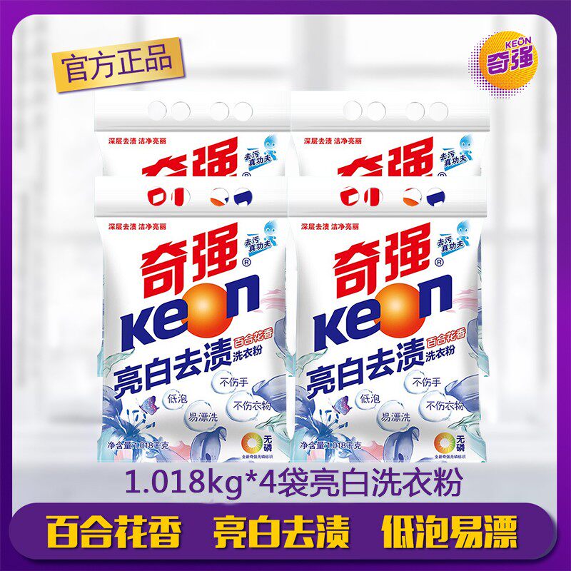 奇强亮白去渍洗衣粉1.018kg*4袋百合花香香味持久大袋家庭装促销