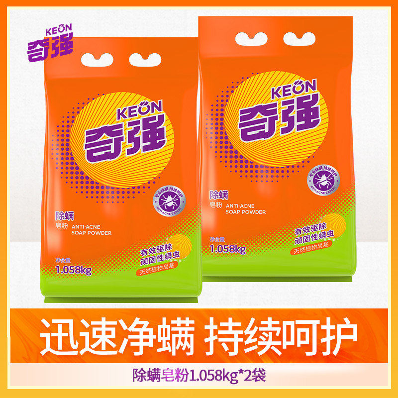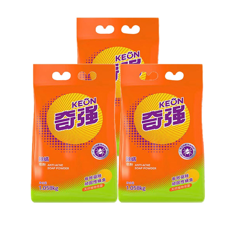 奇强除螨除菌皂粉1.058kg*3袋装护色洗衣粉温和不刺激水机洗通用