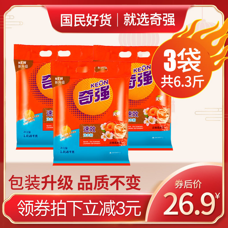 奇强速效洗衣粉1.058kg*3袋6.34斤家庭装包邮洗衣粉大包无赠品