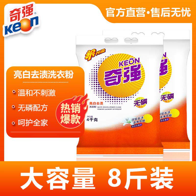 奇强/keon 8斤盐洁冷水洗衣粉4kg家庭装大包洗衣粉
