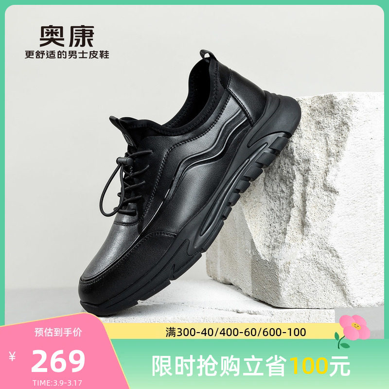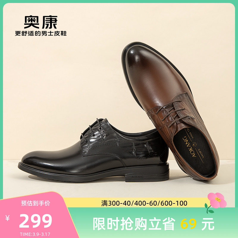奥康男鞋春季男士商务正装软底透气真皮青年韩版潮流系带休闲皮鞋