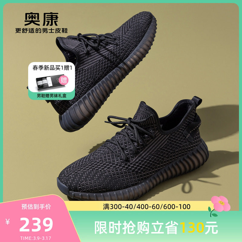 奥康正品椰子男鞋2024春季新款潮透气减震男士休闲运动飞织跑步鞋