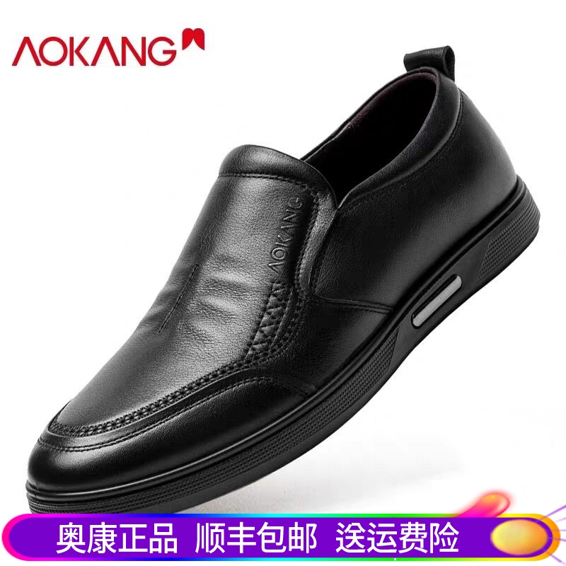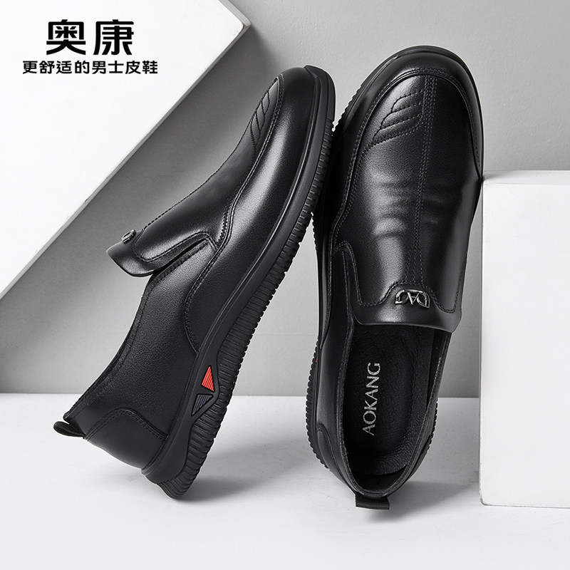 奥康皮鞋男春秋真皮透气商务休闲皮鞋加绒软底一脚蹬中老年爸爸鞋