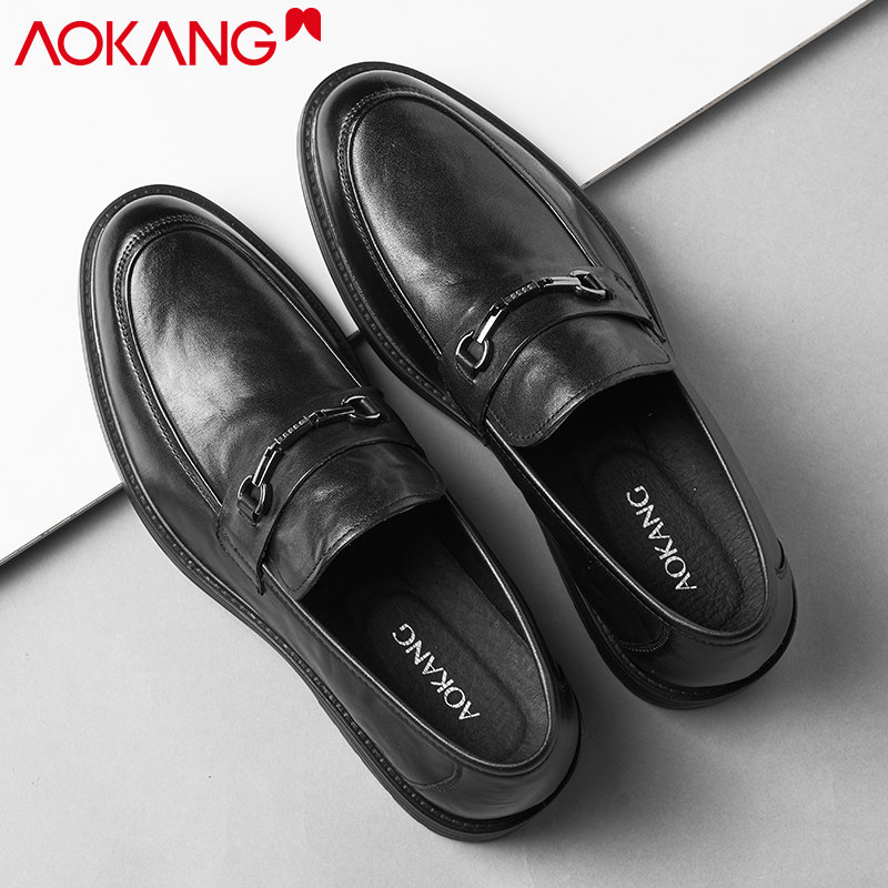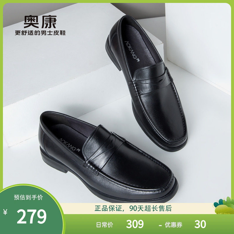 奥康清仓商务正装皮鞋男英伦真皮休闲鞋秋季透气头层牛皮套脚男鞋