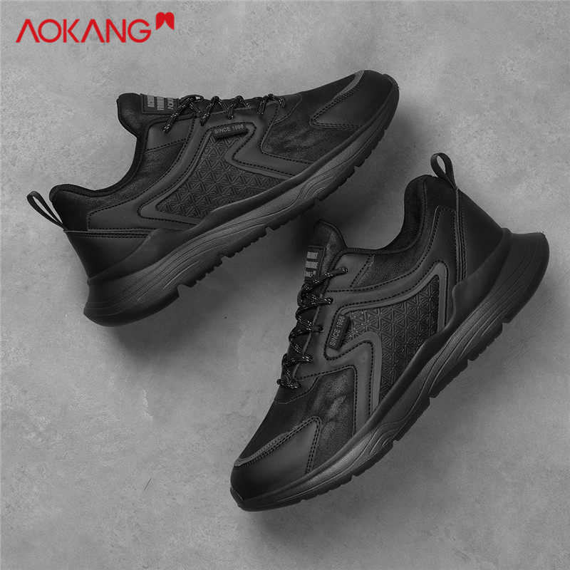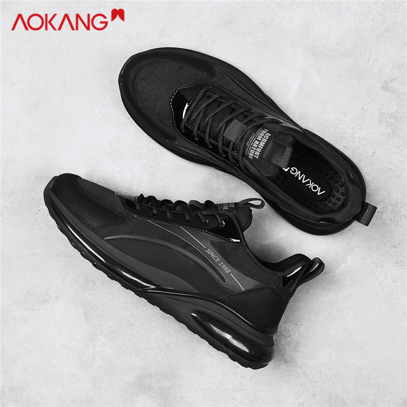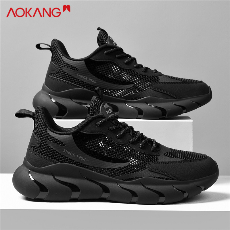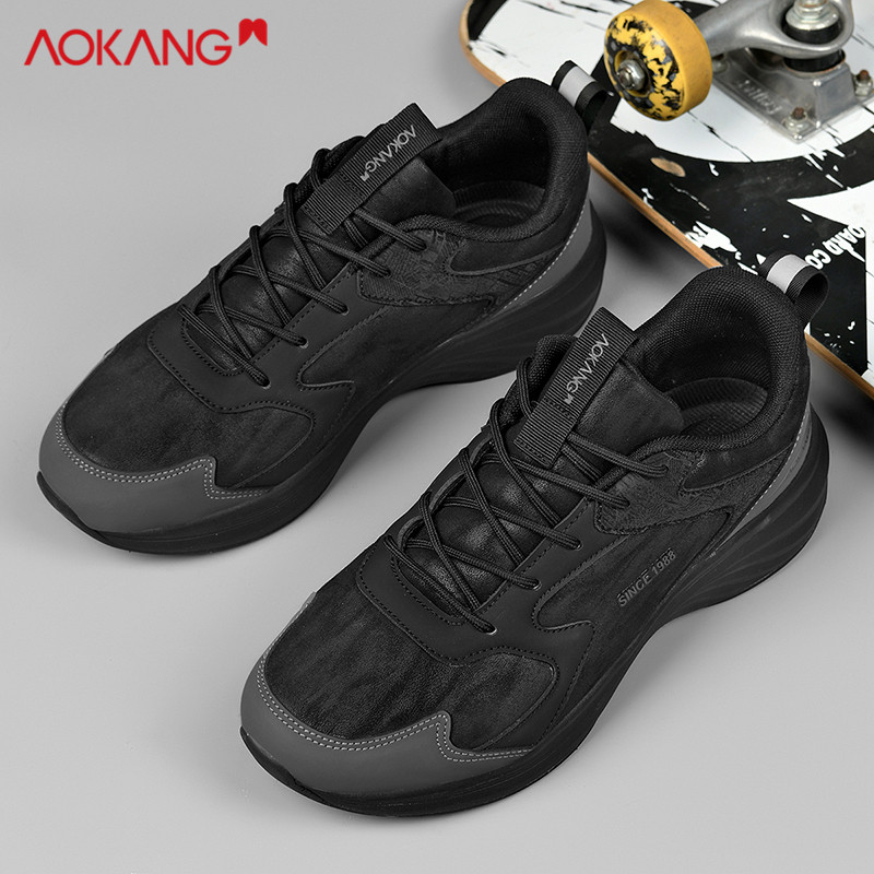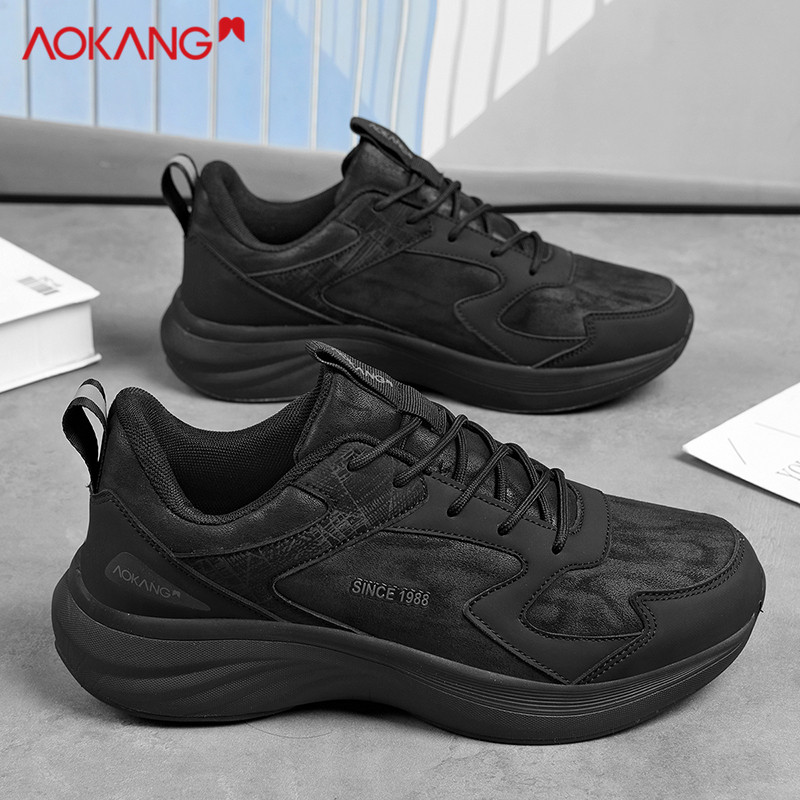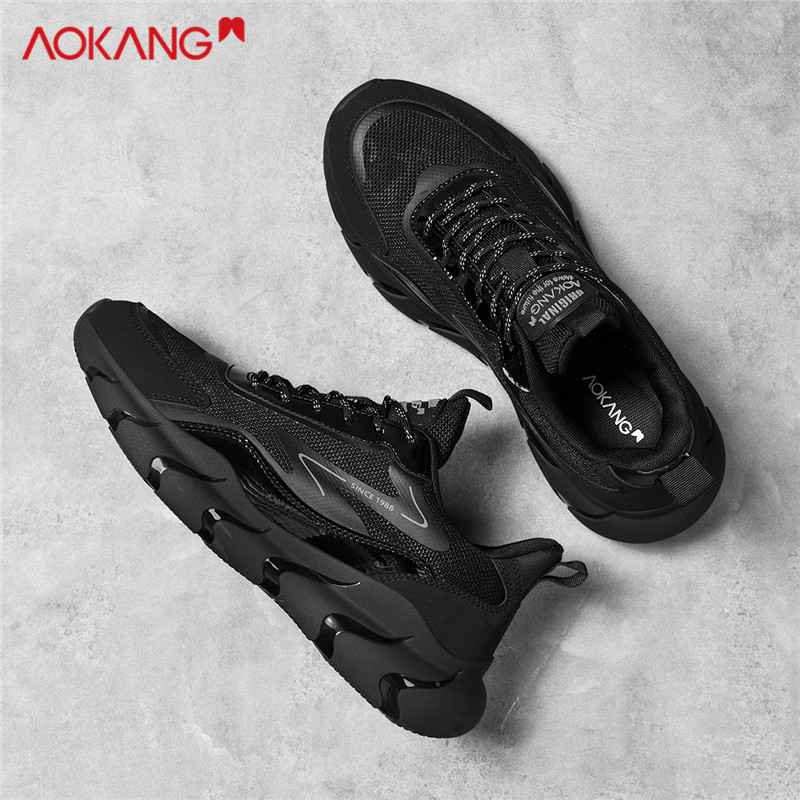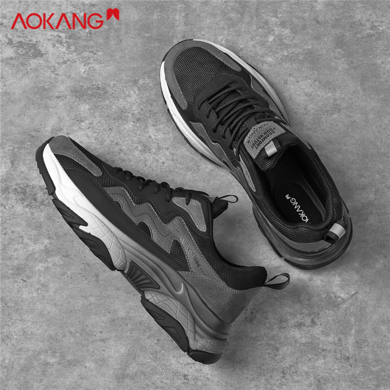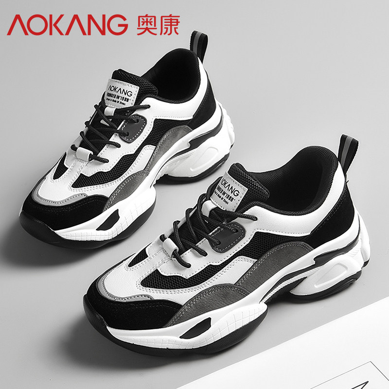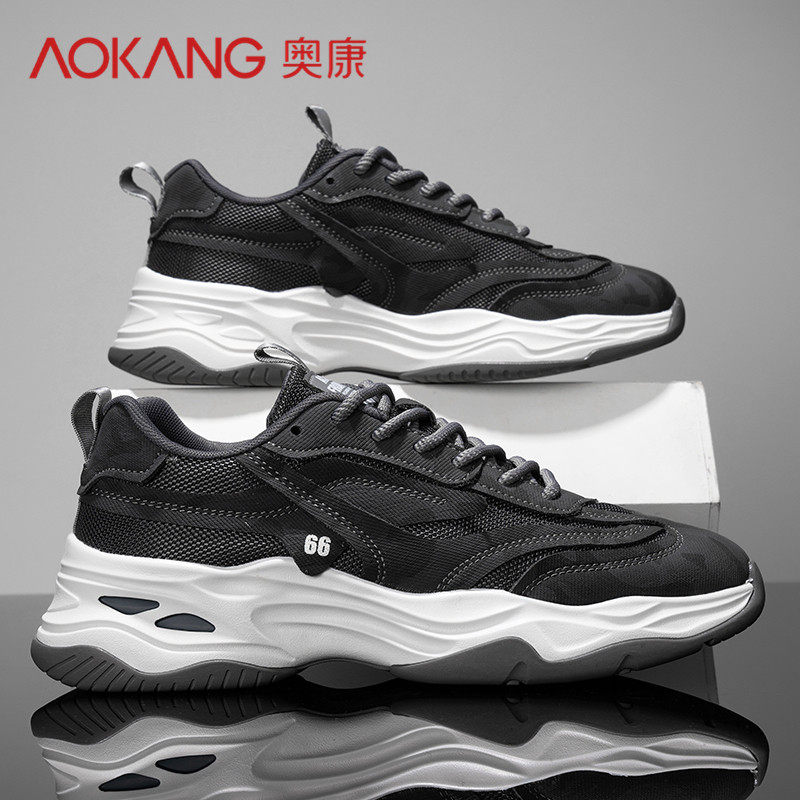 奥康官方正品运动男鞋春季新款男士透气休闲运动鞋黑色厚底老爹鞋
