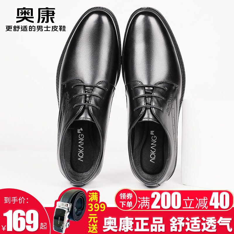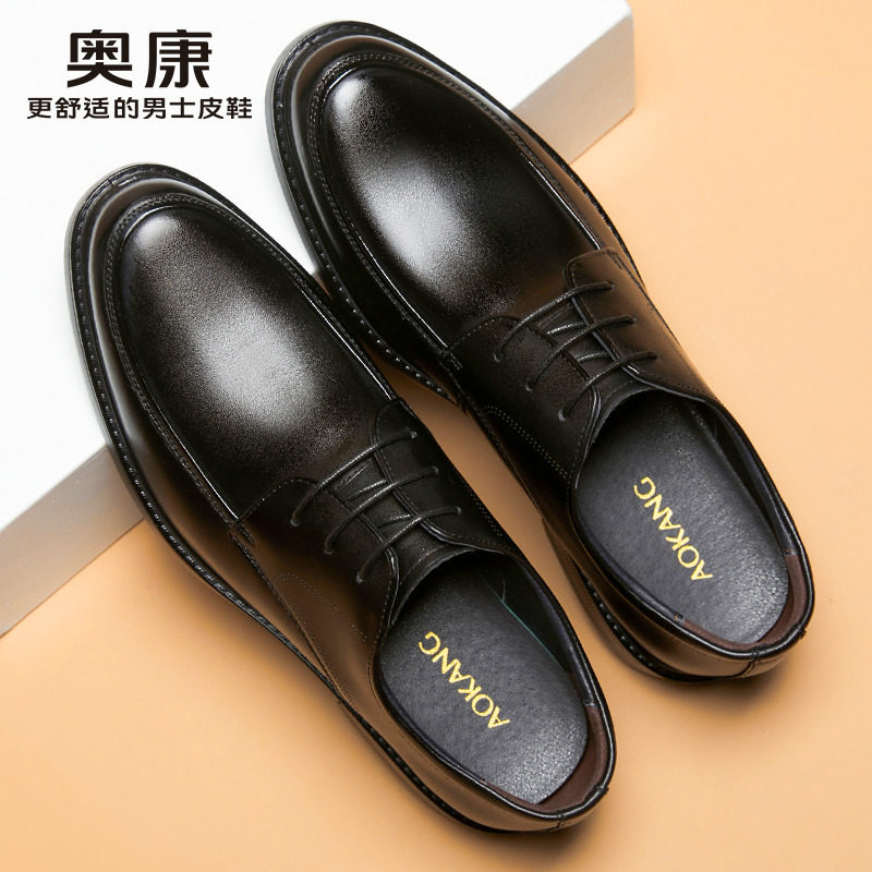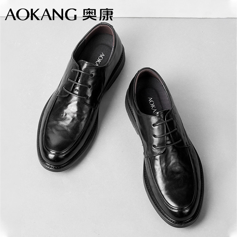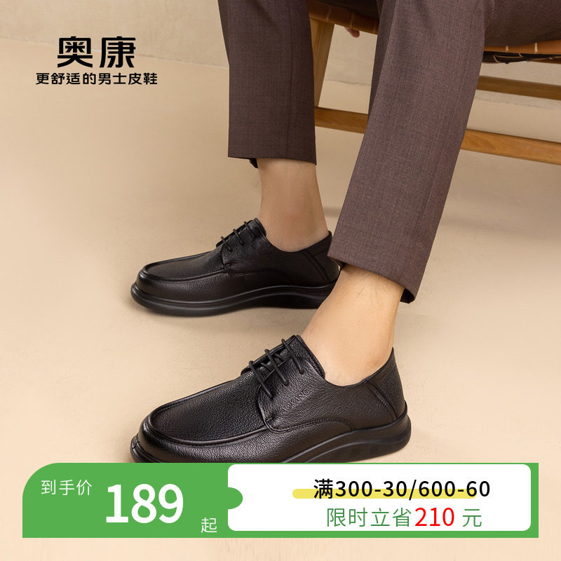 奥康清仓款头层牛皮商务正装休闲皮鞋男英伦百搭真皮透气系带男鞋