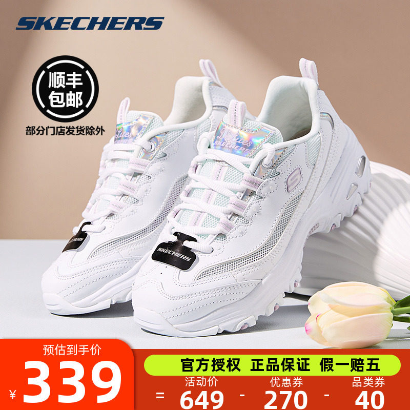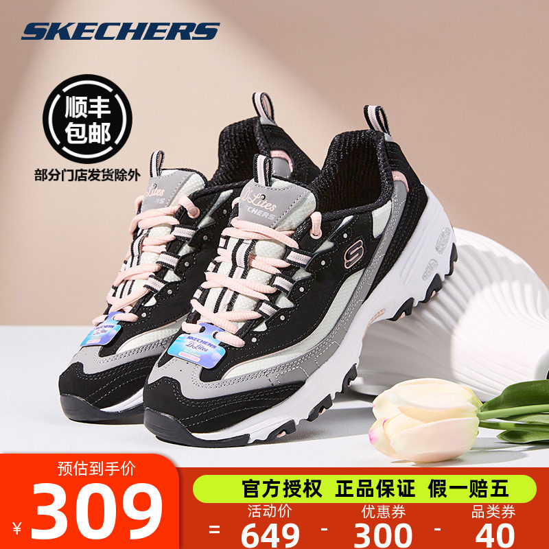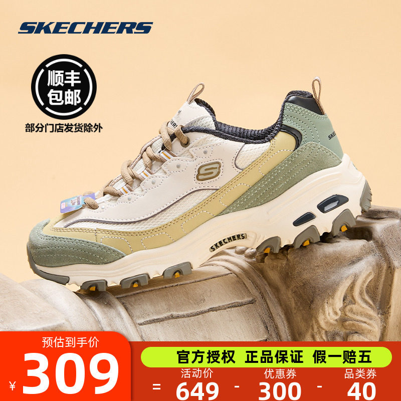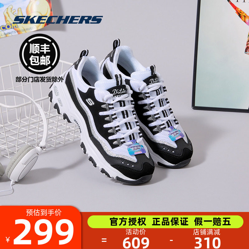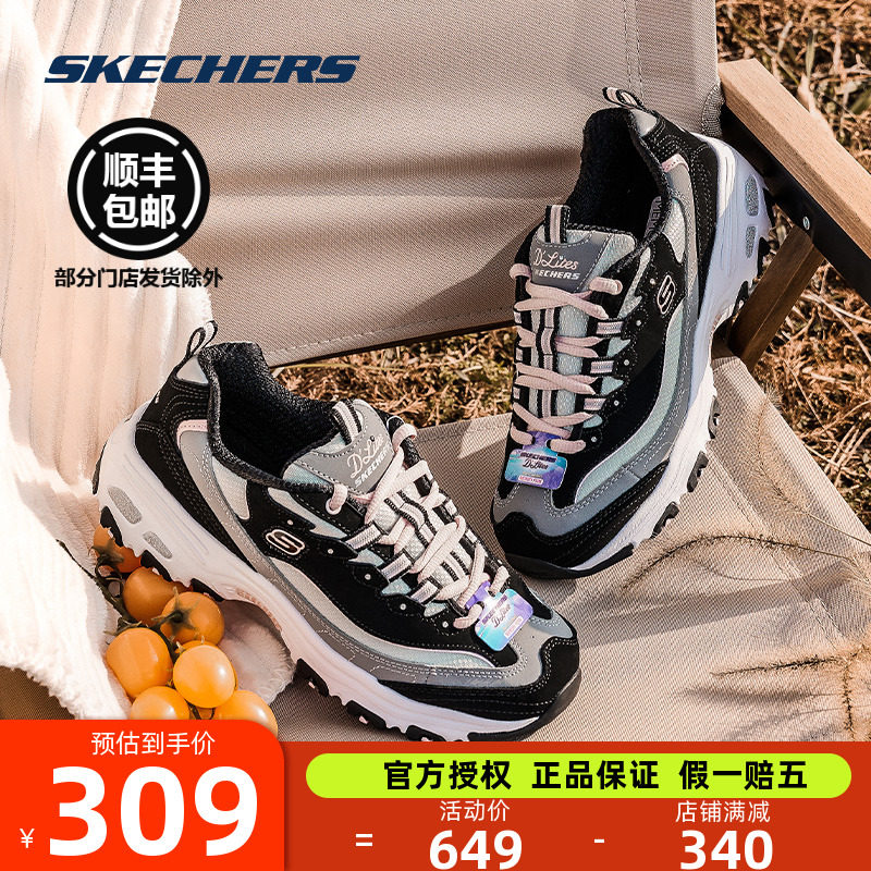 斯凯奇女鞋新款老爹鞋女透气奶茶熊猫鞋官方旗舰店厚底增高运动鞋