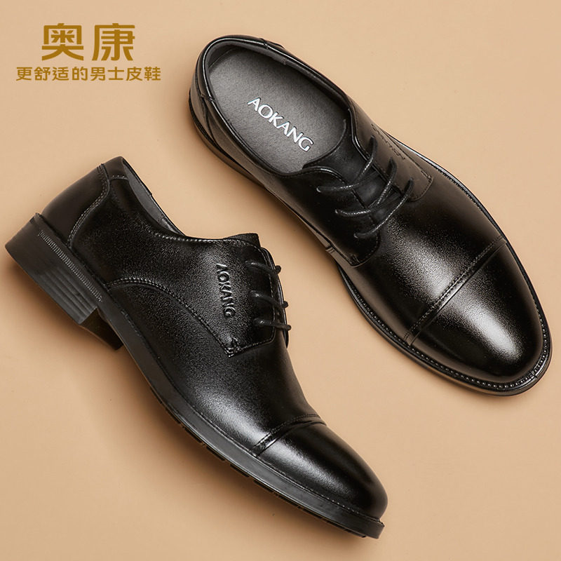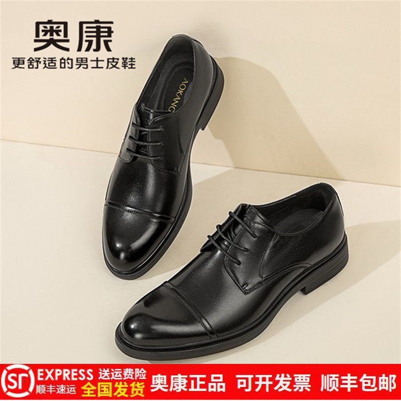 奥康皮鞋男春秋通勤商务透气正装真皮鞋子系带百搭英伦风工作男鞋