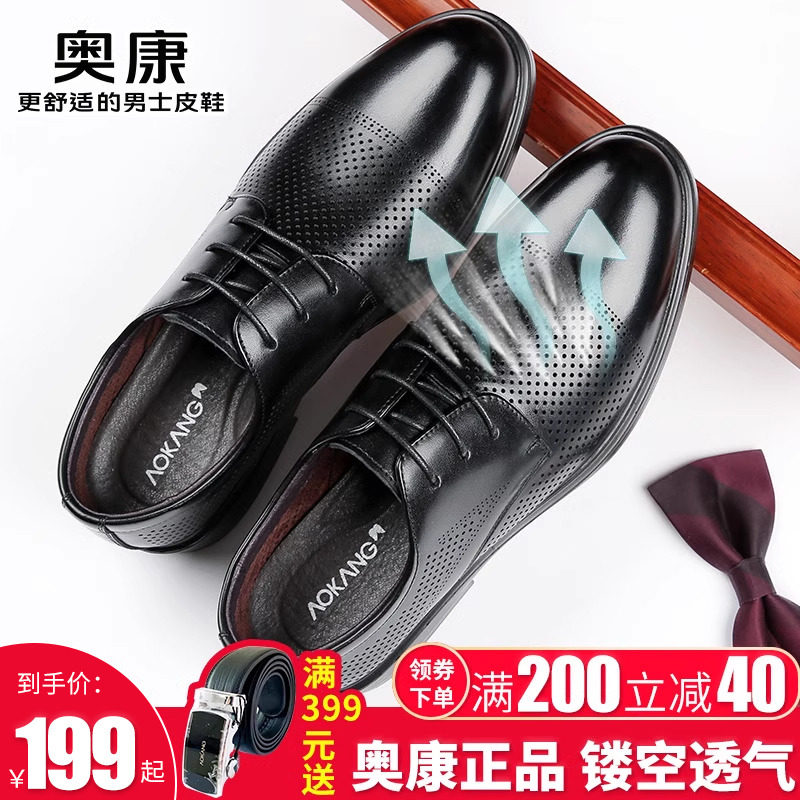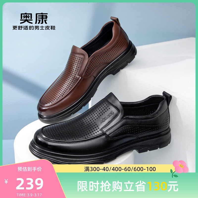 奥康皮鞋男夏季透气真皮打孔男鞋男士商务休闲夏天镂空皮凉鞋男款
