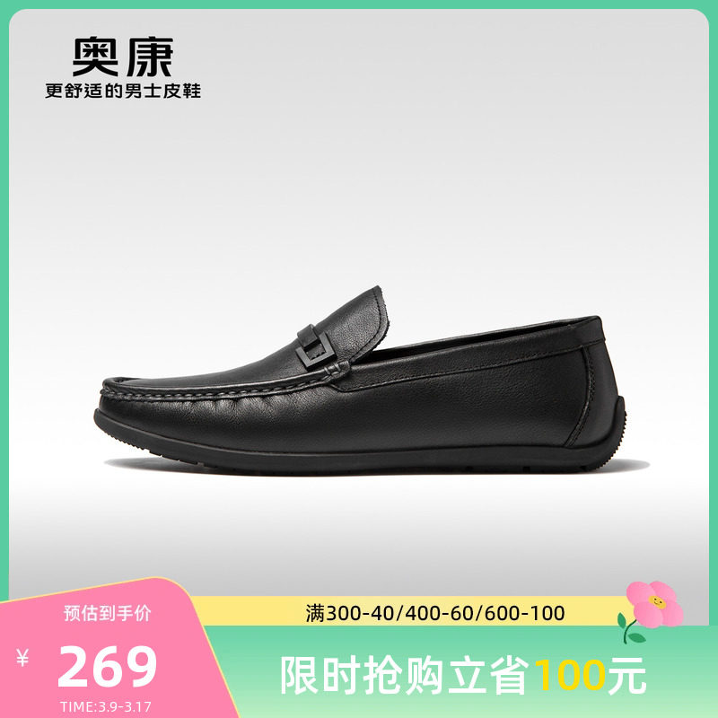 奥康男鞋春秋男士休闲皮鞋透气一脚蹬软底软面皮鞋真皮驾车豆豆鞋
