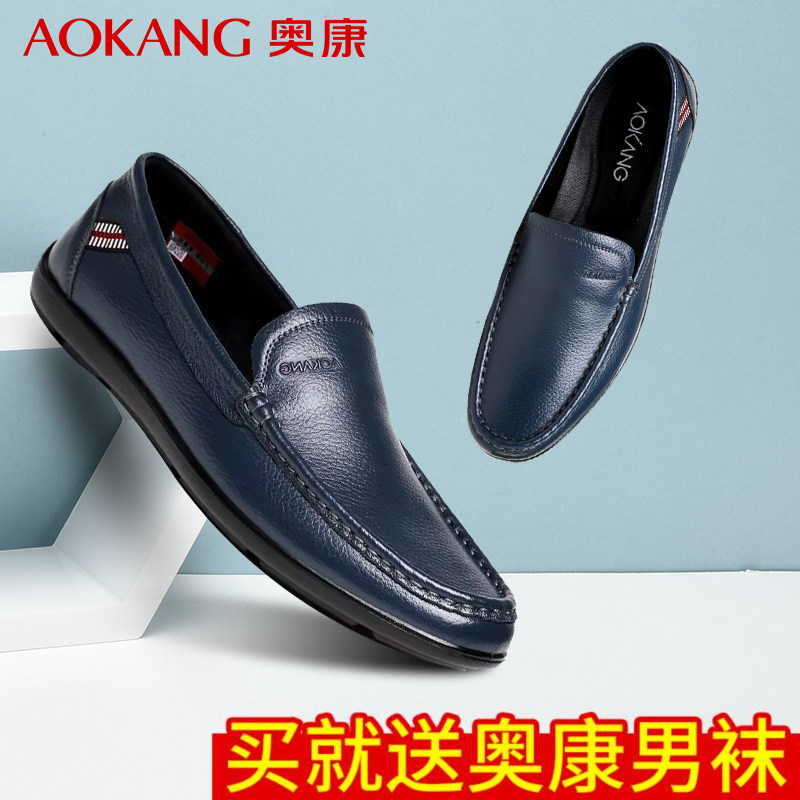 奥康休闲皮鞋男士春秋中年爸爸软底透气开车真皮商务头层牛皮男鞋