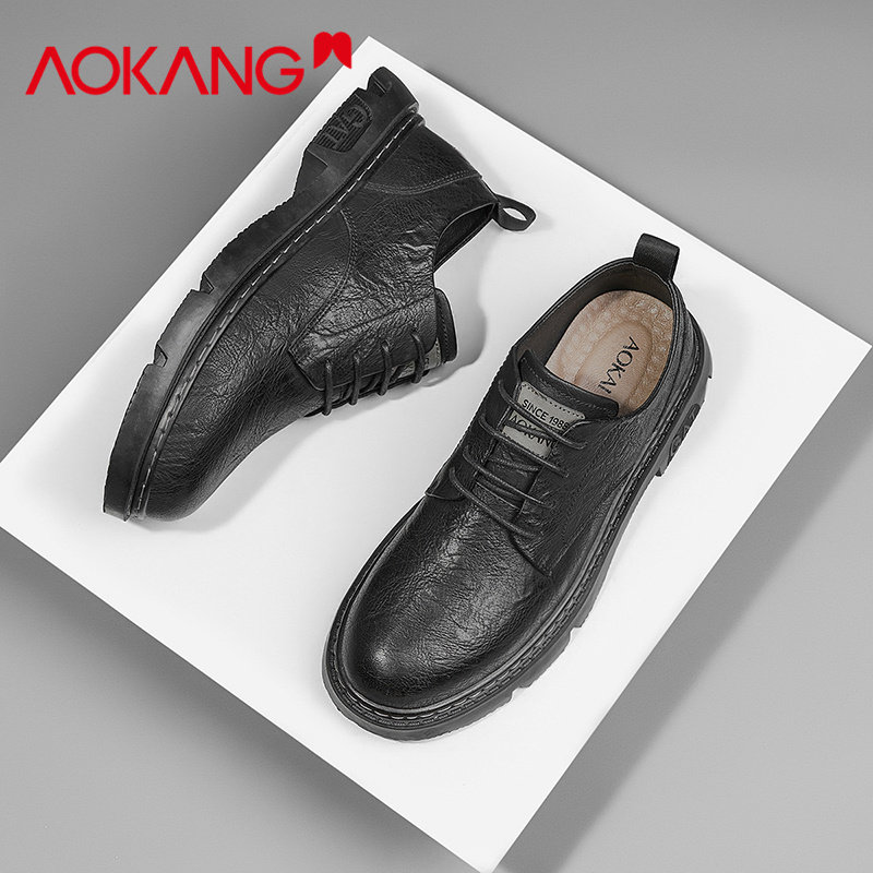 奥康皮鞋男士秋季英伦韩版牛皮正装皮鞋男商务休闲透气时尚通勤鞋