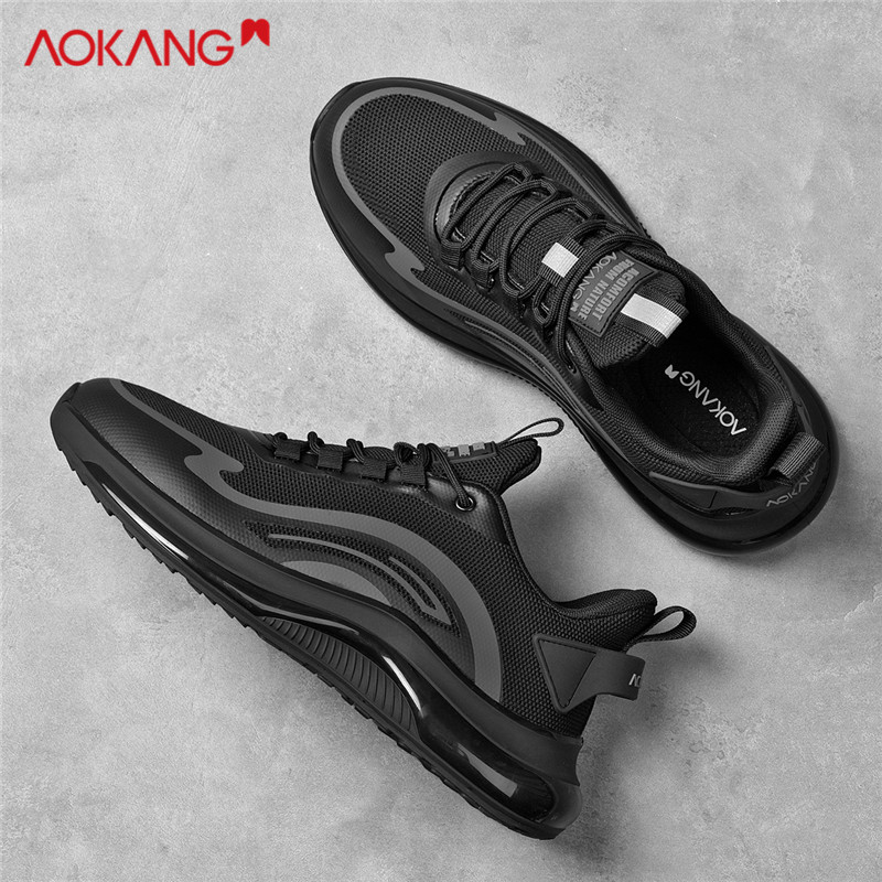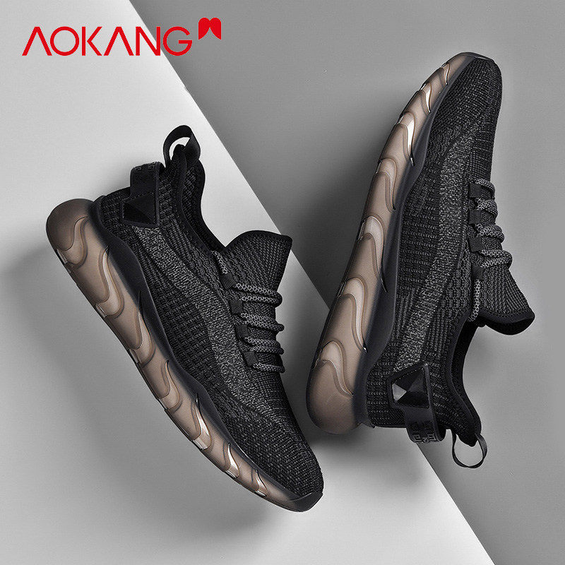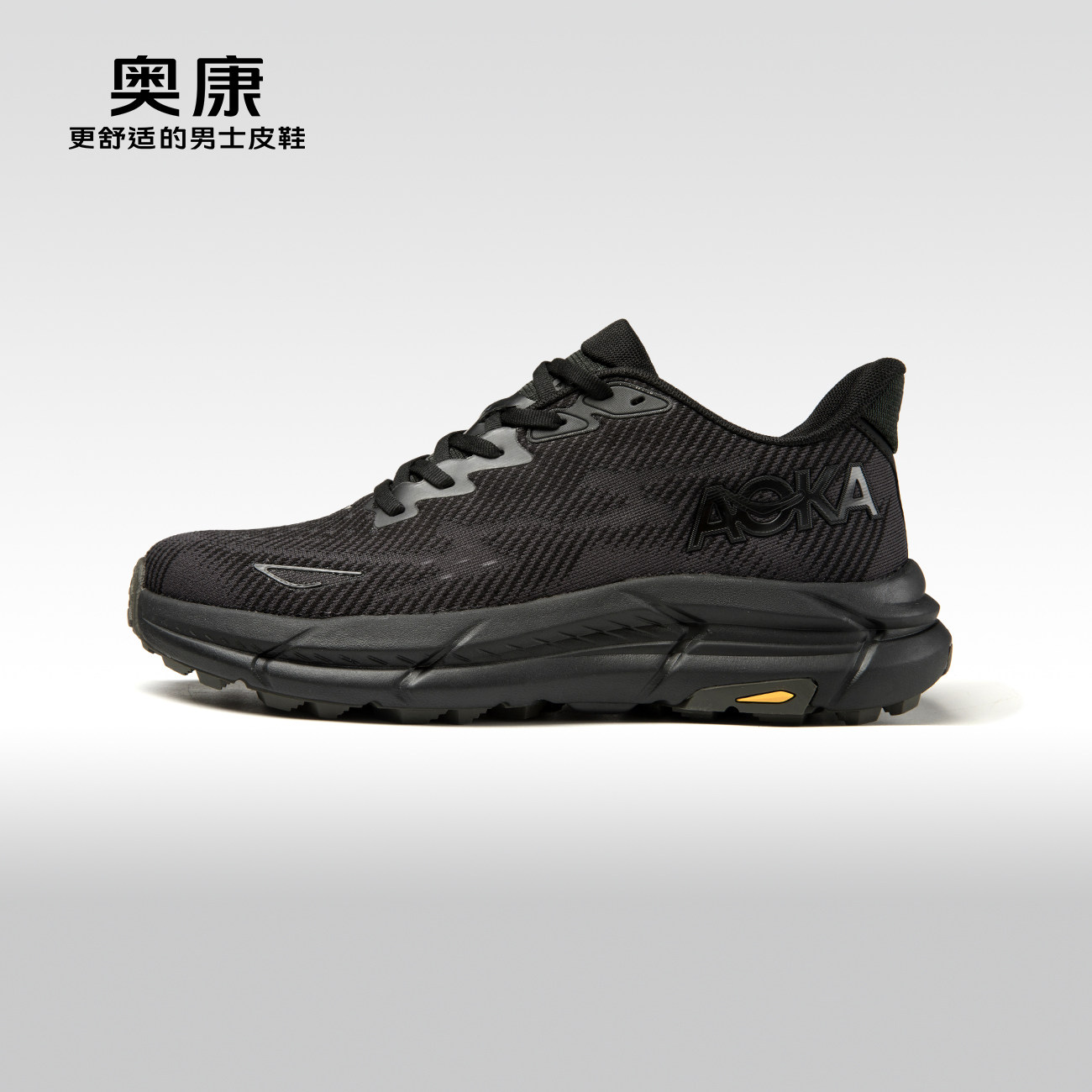 奥康男鞋2024春季新款透气飞织网面跑步鞋黑色潮鞋男士时尚运动鞋