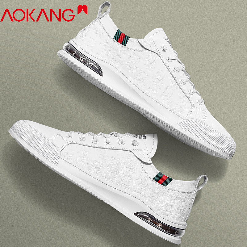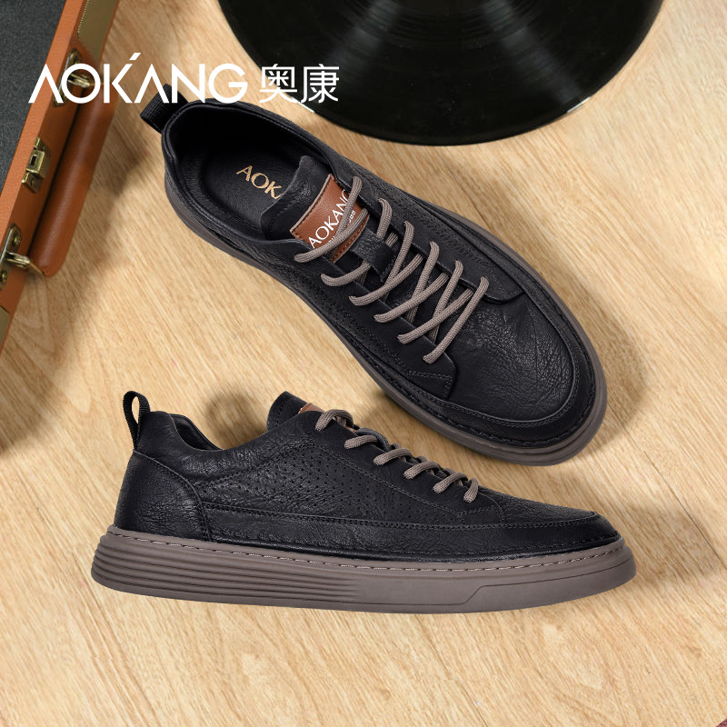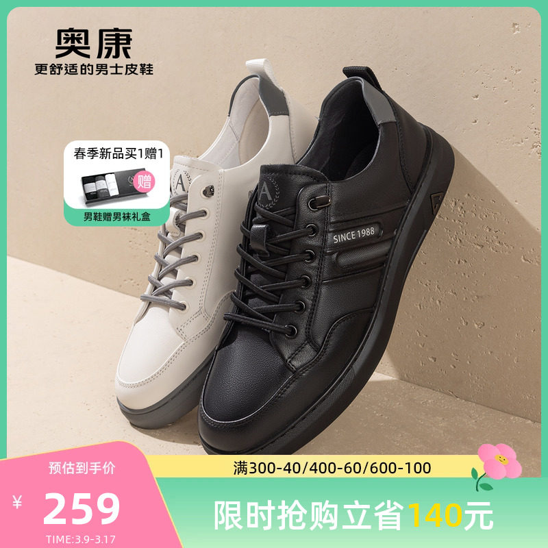 奥康正品休闲板鞋男2024春秋季新款低帮男鞋真皮英伦风透气小皮鞋