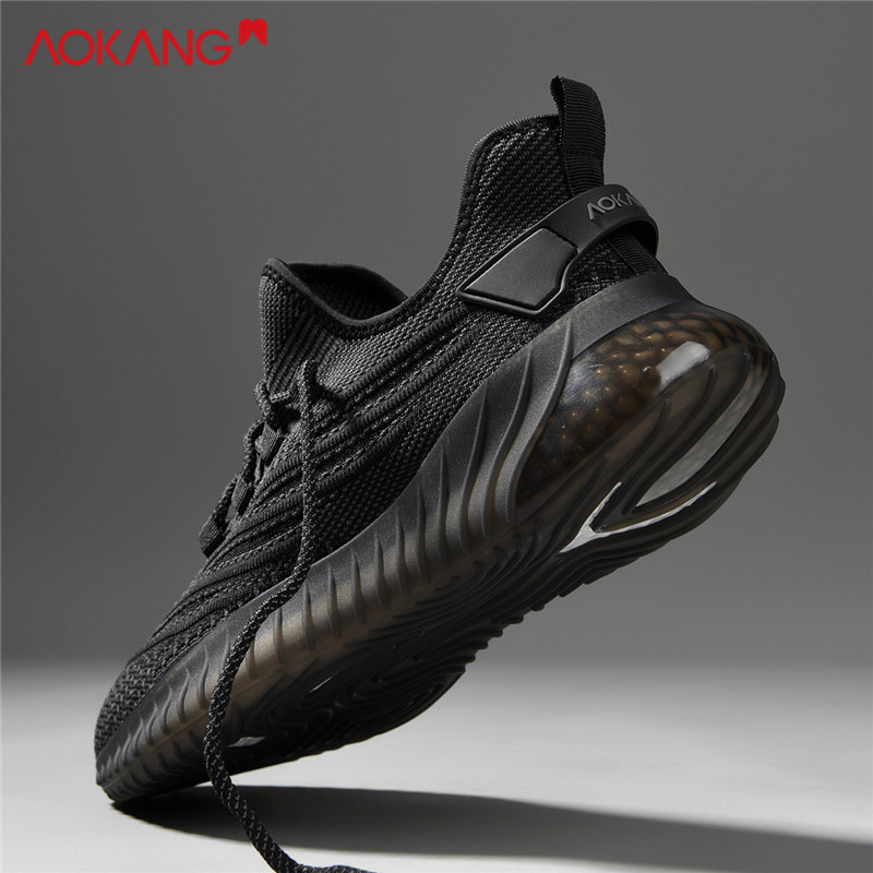 奥康正品椰子鞋男春季透气镂空厚款飞织运动鞋子黑色减震软底跑鞋