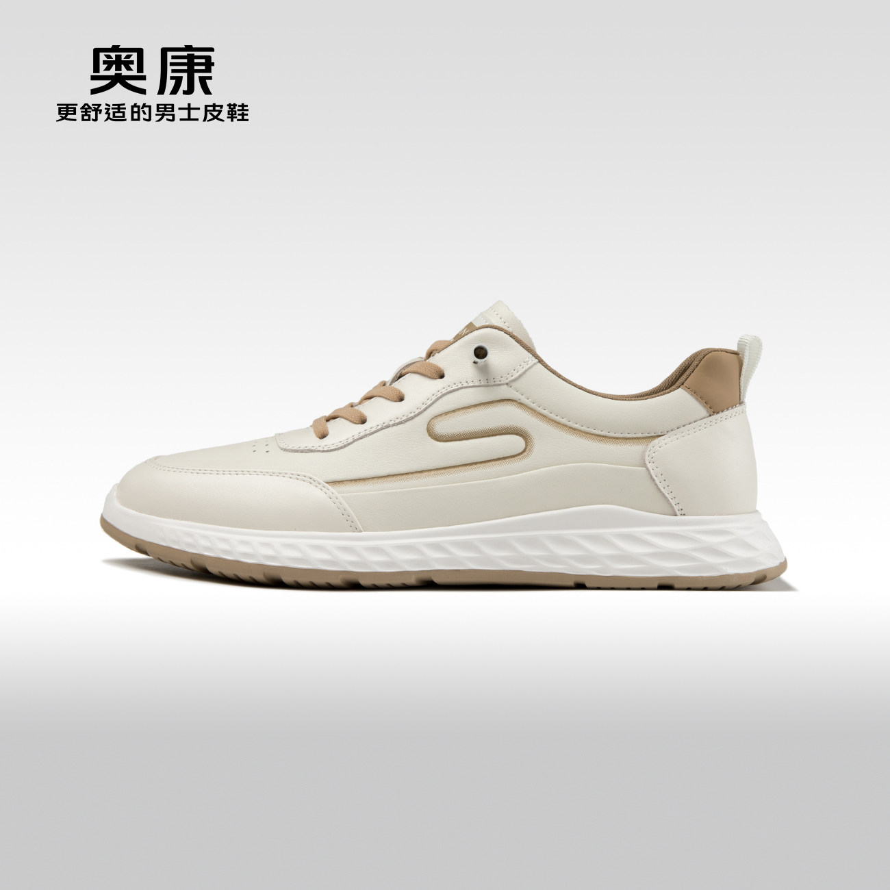 奥康官方男士小白鞋春季2024新款透气轻奢大牌正品牛皮休闲板鞋子