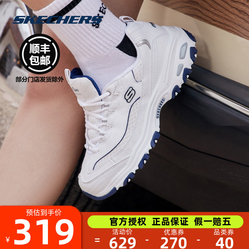 斯凯奇 女鞋 透气网面熊猫鞋增高厚底海军蓝小白鞋运动休闲老爹鞋