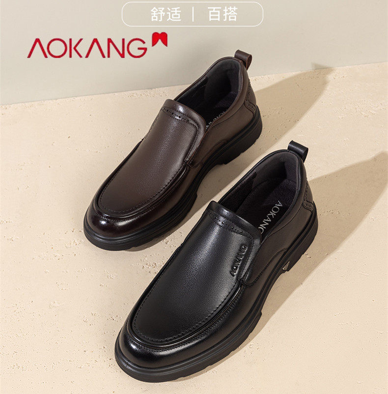 奥康男鞋秋冬季新款商务正装男士皮鞋棕色真皮透气厚底中年爸爸鞋