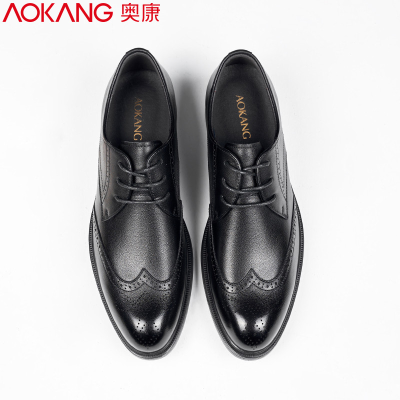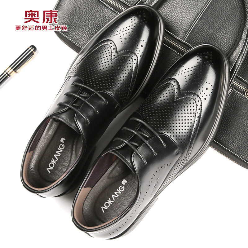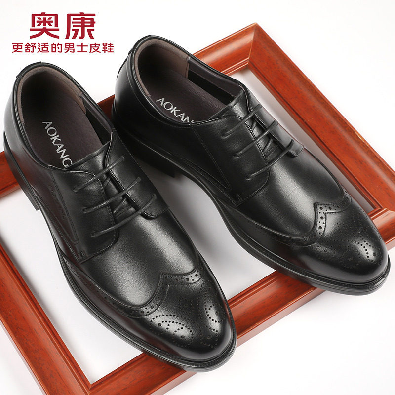 奥康男鞋秋季皮鞋男真皮商务正装布洛克雕花皮鞋透气英伦内增高