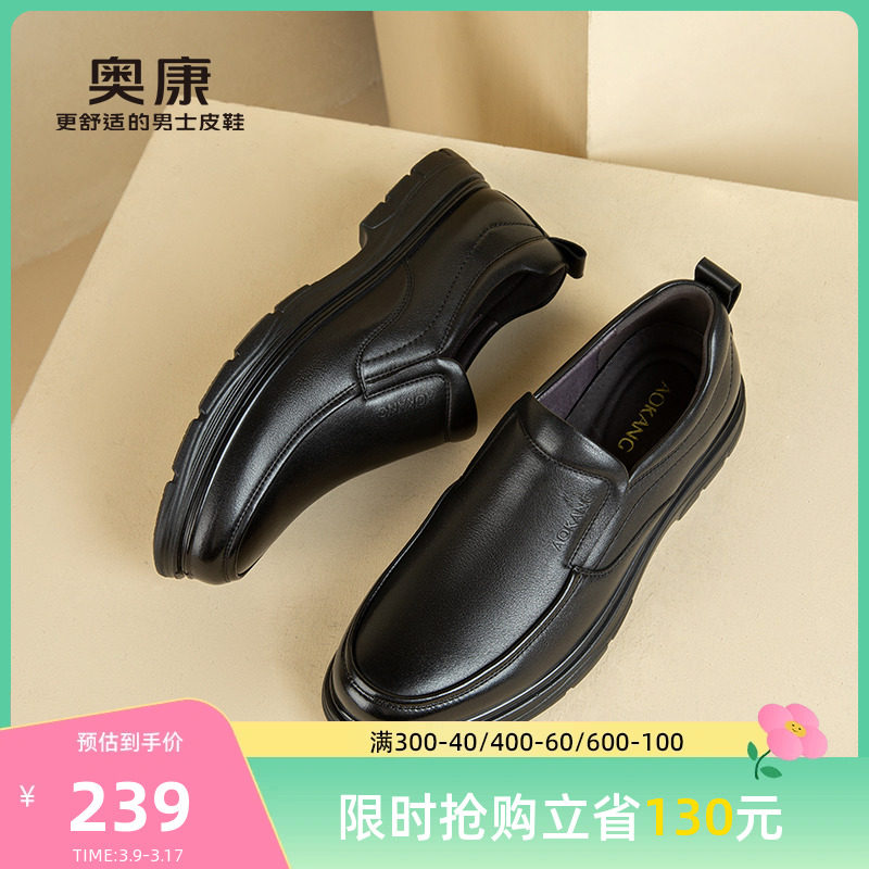 奥康男鞋春秋新款真皮套脚商务休闲皮鞋男士透气柔软防滑爸爸皮鞋
