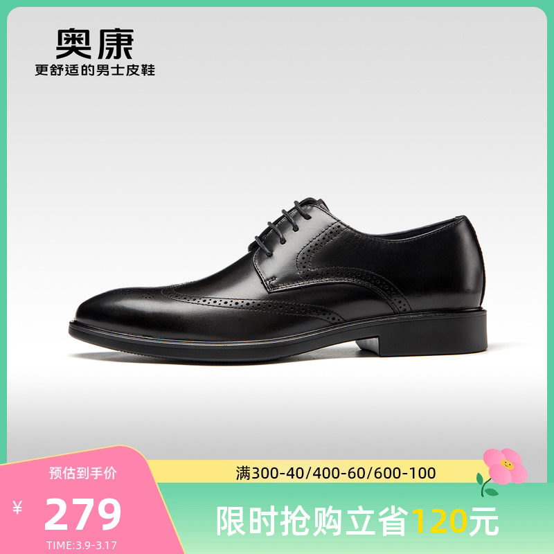 奥康男鞋春季新款时尚布洛克雕花英伦透气轻便正装皮鞋气质男