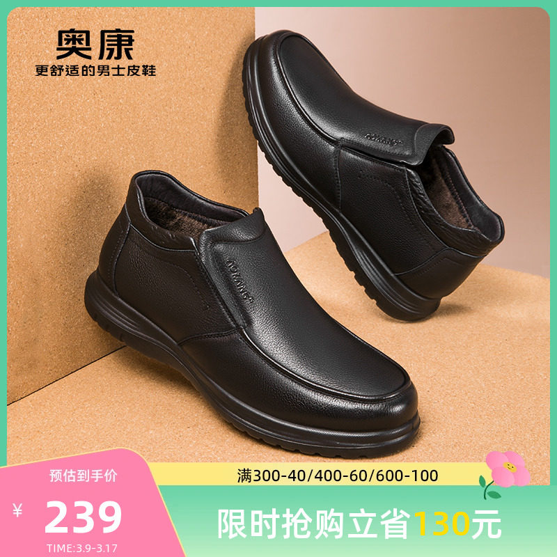 奥康男鞋 秋冬新款透气时尚加绒保暖棉鞋商务休闲真皮高帮爸爸鞋