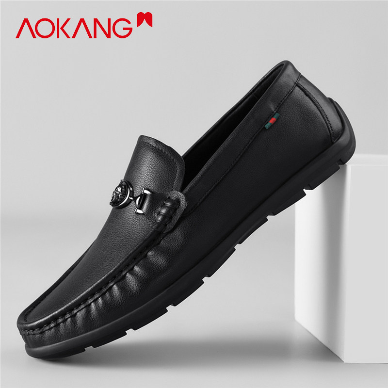 奥康男鞋新款真皮休闲鞋男士一脚蹬透气商务头层牛皮套脚软面皮鞋