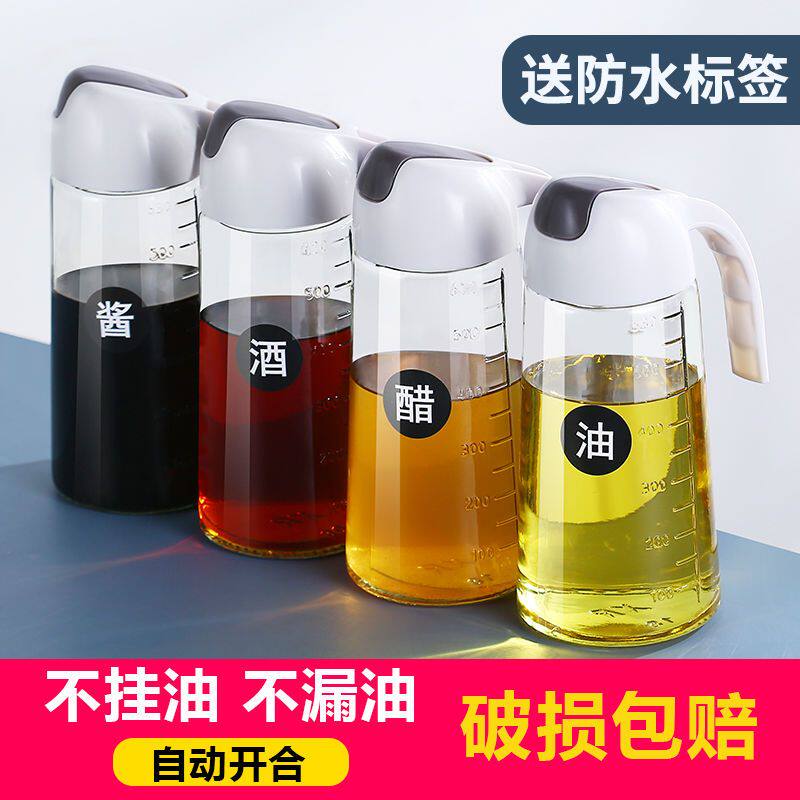 自动开合玻璃油壶家用厨房大容量装油瓶防漏酱油醋瓶不挂油分装瓶