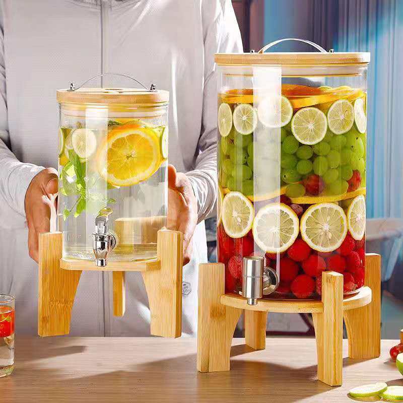 大容量冷水壶凉水壶带龙头柠檬水壶果汁可乐饮料桶容器泡酒玻璃瓶