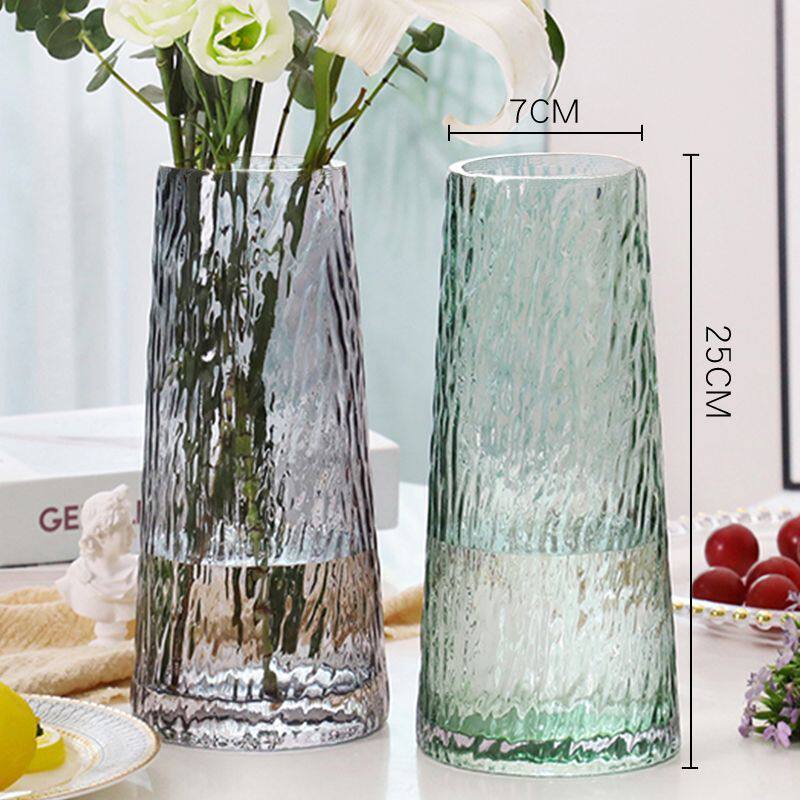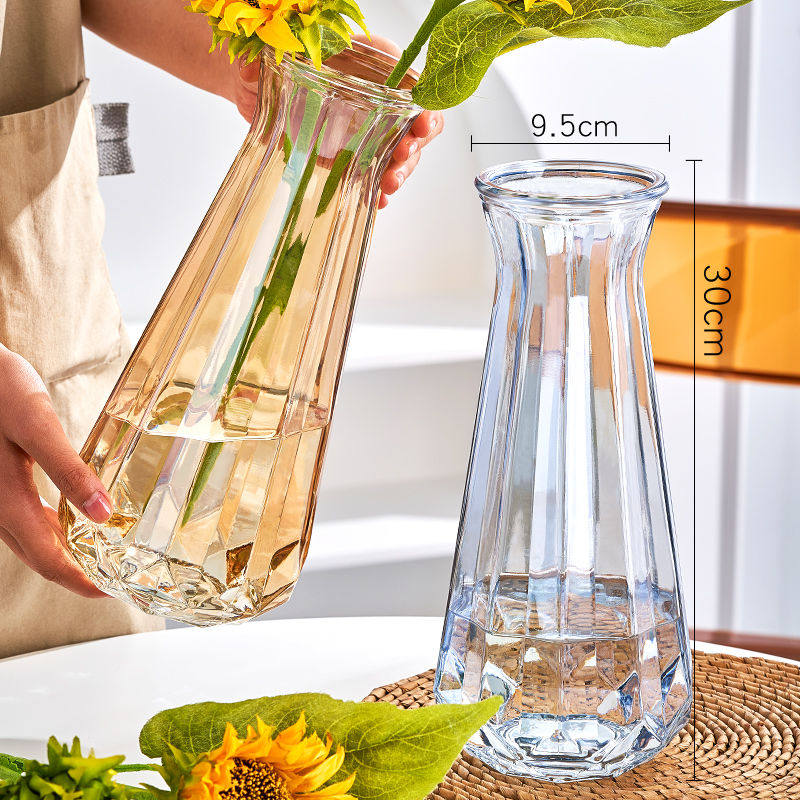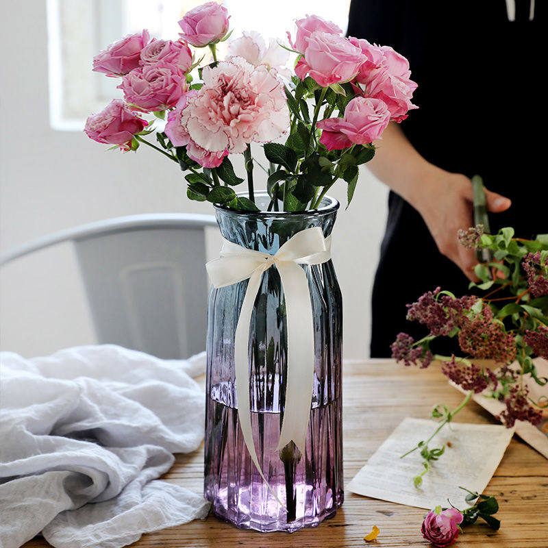 玻璃花瓶摆件装饰绿萝富贵竹百合插干花瓶透明彩色磨砂大号欧式