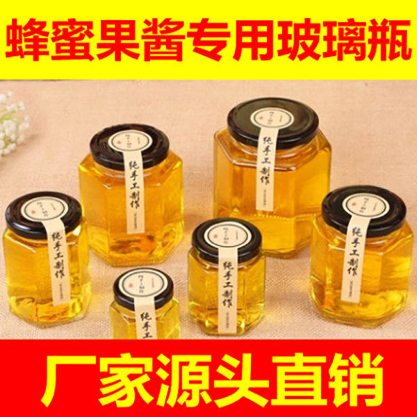 小号六棱玻璃瓶 蜂蜜包装密封罐果酱菜瓶子燕窝罐头瓶带盖