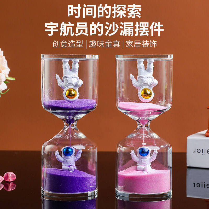 太空人沙漏计时器儿童计时3/5/10分钟学生吃饭时间流沙瓶礼物玻璃
