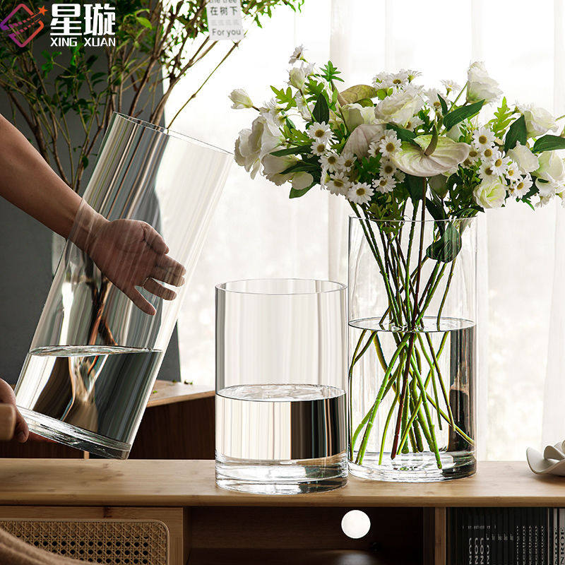 星璇花瓶摆件客厅插雪柳专用花瓶高档透明玻璃瓶马醉木水养富贵竹