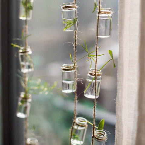 北欧创意玻璃瓶吊挂墙壁风铃挂件门帘水培植物房间小清新墙上装饰
