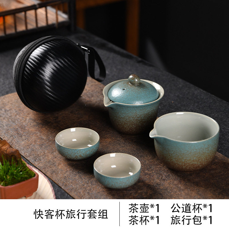 孔雀绿快客杯子户外陶瓷便捷一壶二杯功夫旅行茶具套装便捷包随身