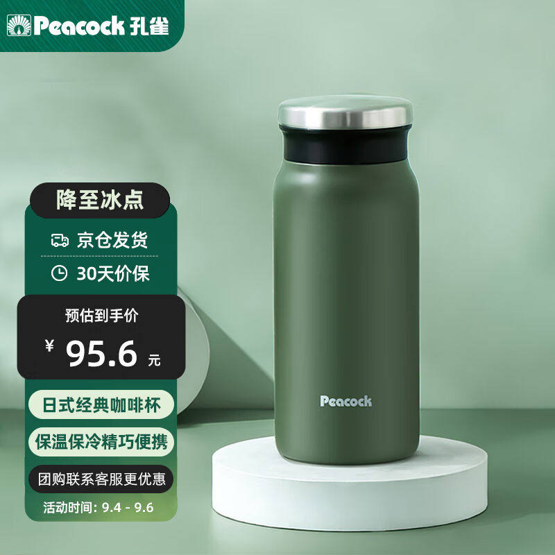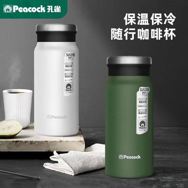 日本孔雀Peacock保温水杯磨砂绿蓝316不锈钢便携高档咖啡杯随手杯