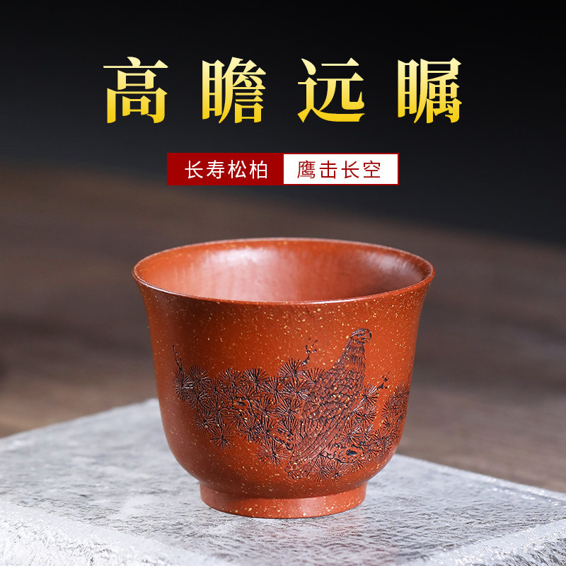 宜兴纯手工品茗杯功夫茶杯主人杯紫砂杯子单杯小口杯茶具孔雀老鹰