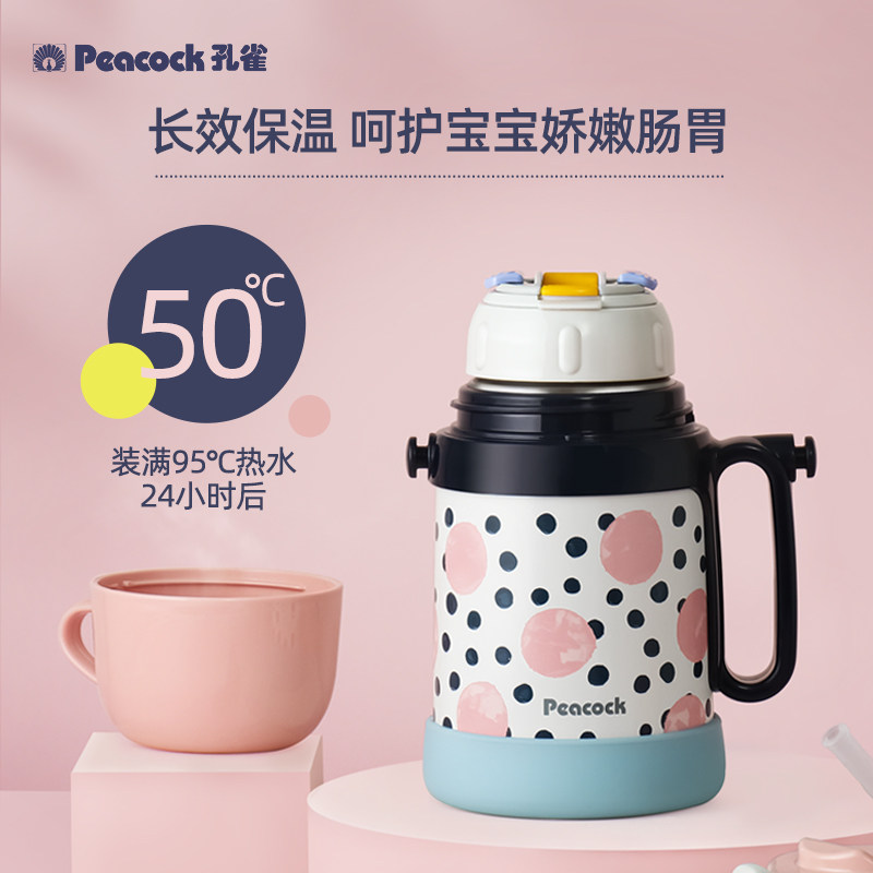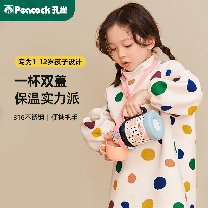 Peacock孔雀保温杯儿童水壶女孩吸管保温水杯吸管杯男孩上学专用