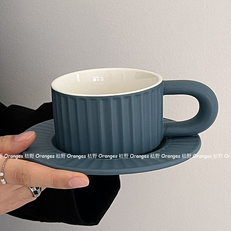 Oranges 初秋高级感复古孔雀蓝磨砂陶瓷咖啡杯碟拿铁杯下午茶水杯