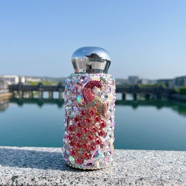 网红款孔雀轻奢镶钻保温杯304不锈钢高颜值ins车载满钻女水杯礼品