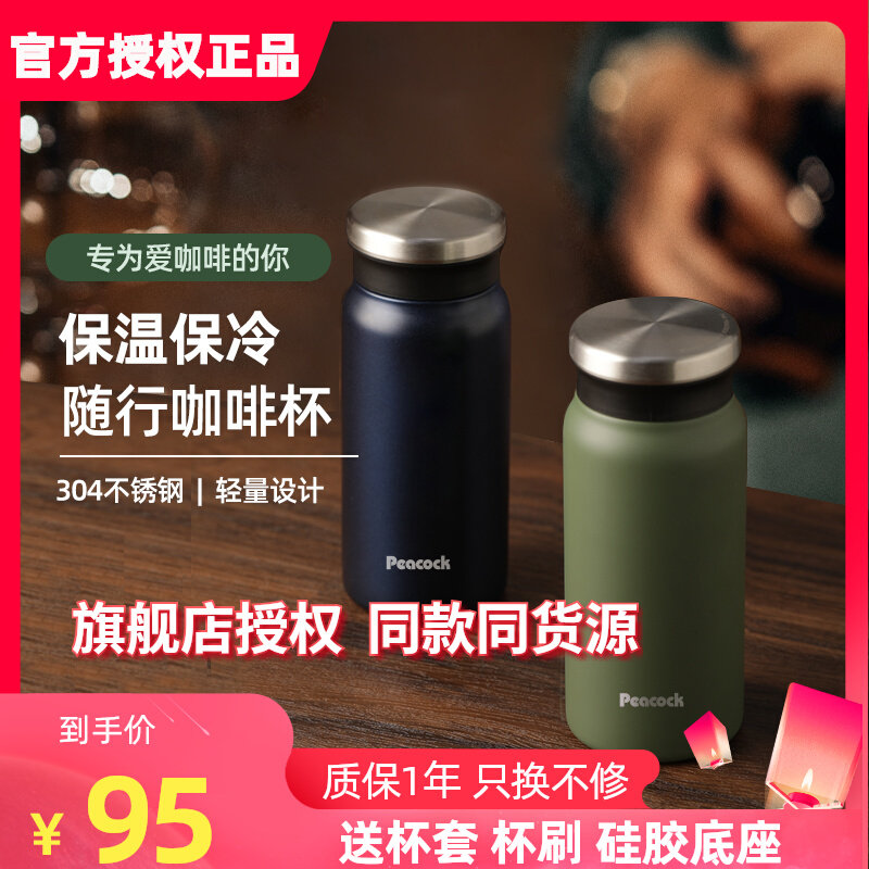 Peacock孔雀保温杯男女士大容量咖啡杯316不锈钢便携车载水杯随行