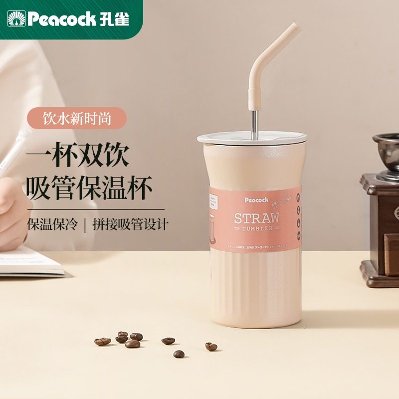 Peacock日本孔雀316不锈钢保温杯带吸管水杯女生高颜值孕妇成人男