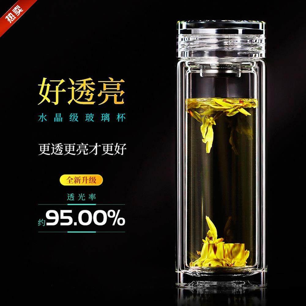 双层玻璃杯隔热茶杯男士泡茶水杯透明女个人家用高档车载水晶杯子