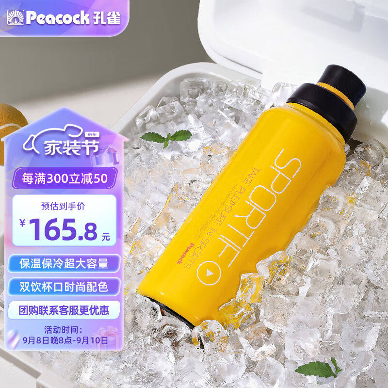 孔雀(Peacock)大容量保温杯不锈钢户外运动水杯男女学生高颜值