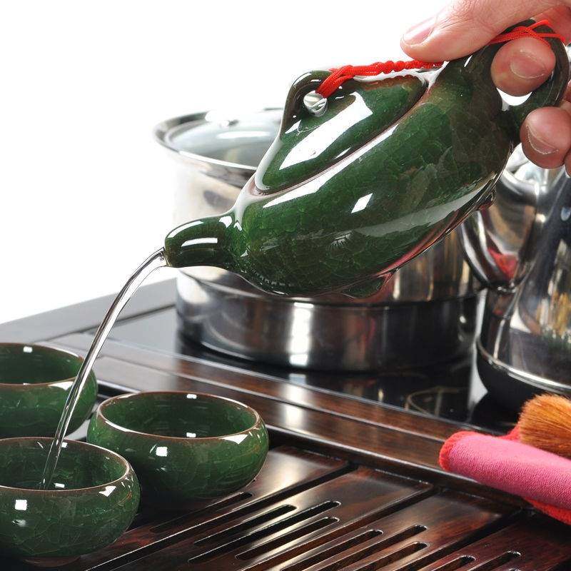 孔雀绿色冰裂茶具陶瓷整套装盖碗壶茶叶罐茶海过滤网公道杯子茶道