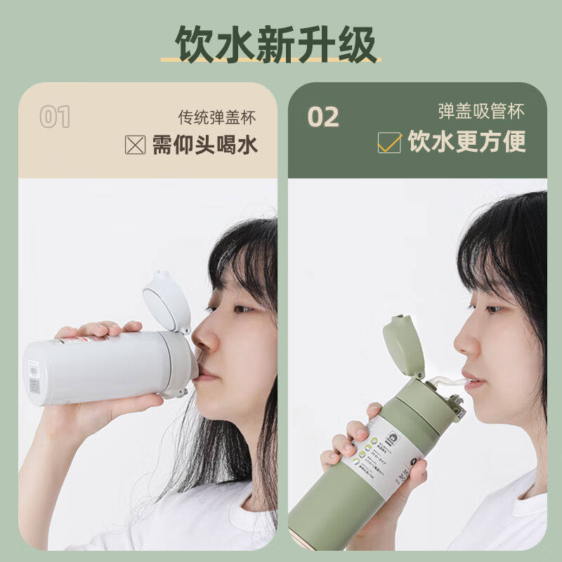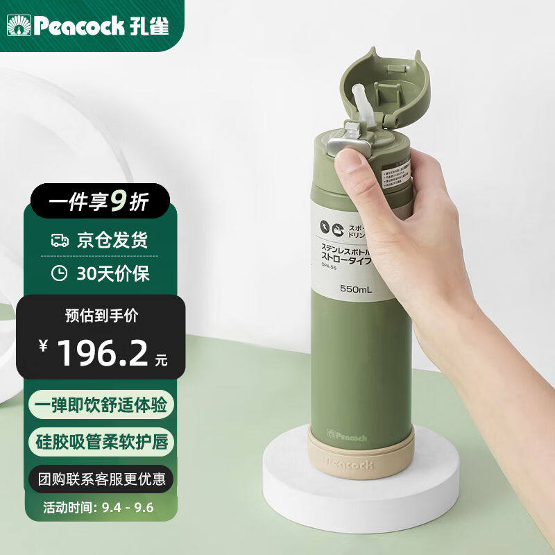 Peacock日本孔雀保温杯带吸管水杯女生高颜值316不锈钢孕妇成人男