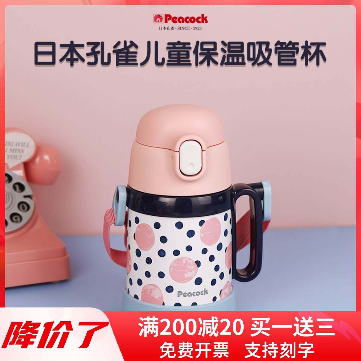 peacock日本孔雀儿童保温杯带吸管女宝宝水杯316食品级幼儿园水壶