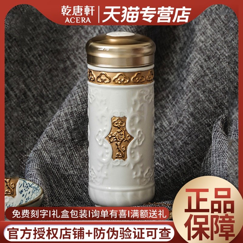 乾唐轩活瓷大如意孔雀天鹅随身杯双层便携陶瓷水杯子商务送礼品杯