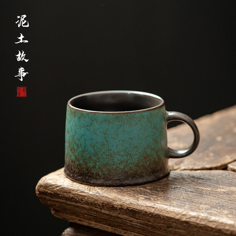孔雀绿窑变茶杯家用陶瓷杯创意复古办公室水杯杯子主人杯茶杯单杯