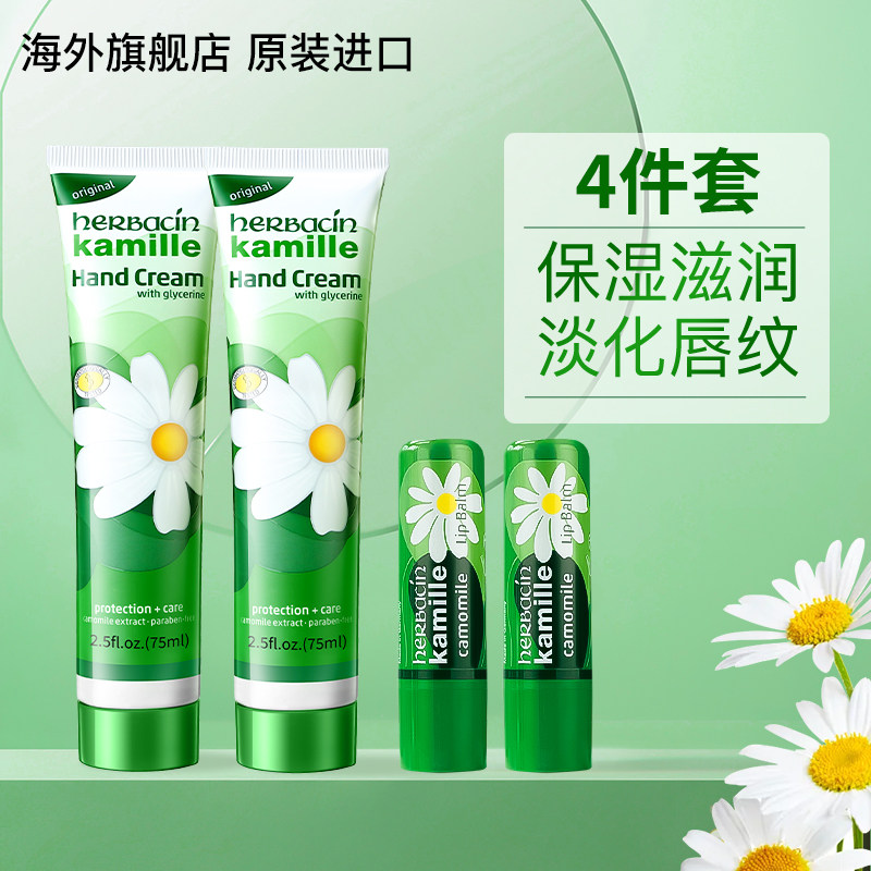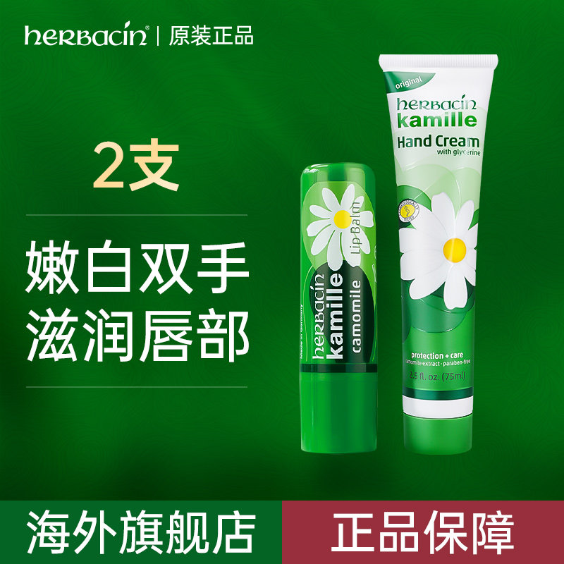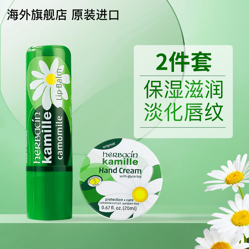 【香港直邮】组合德国Herbacin贺本清小甘菊唇膏4.8g和护手霜75ml